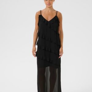 Robe Tima longue noire avec froufrous devant de chez Cream.