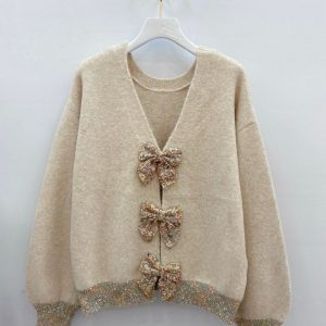 Pull beige à manches courtes avec des noeuds