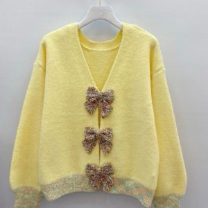 Pull jaune à manches courtes avec des noeuds