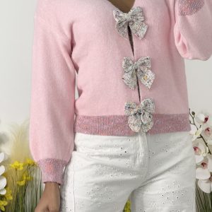Pull rose à manches courtes avec des noeuds