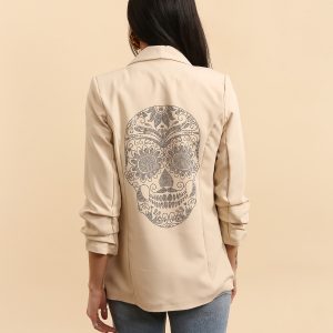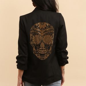 Veste blazer unie Tête de Mort strass or au dos
