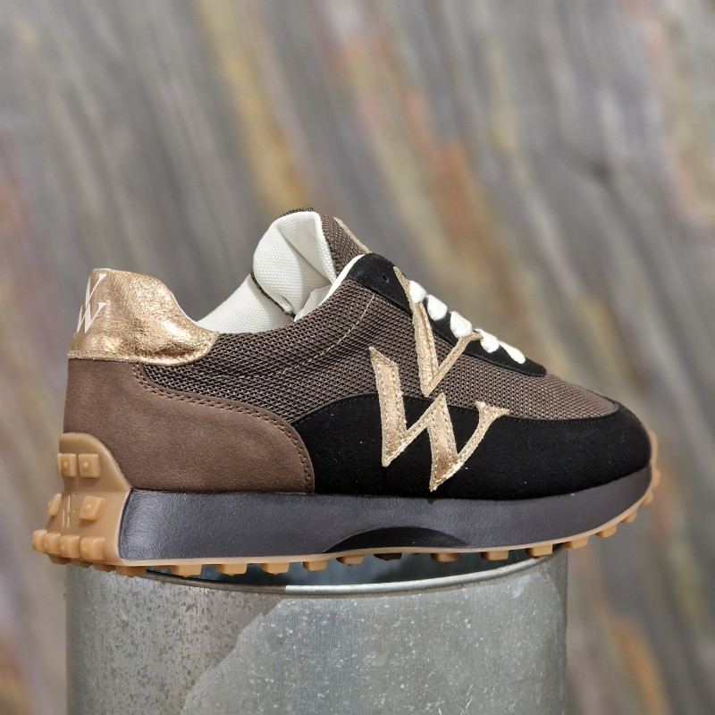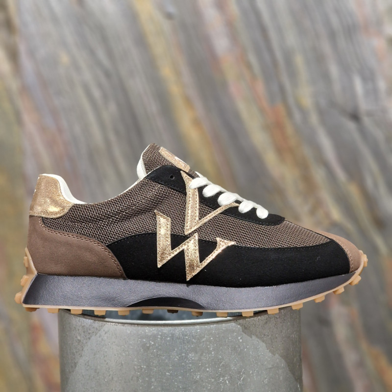Basket monogramme Pia noir et marron à semelle running de chez VANESSA WU.