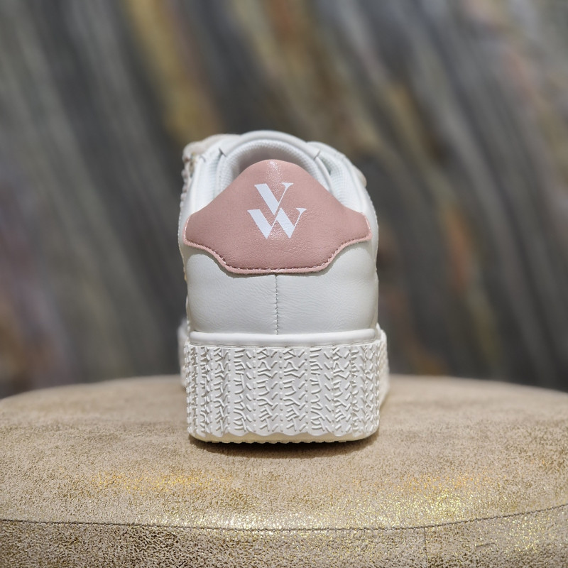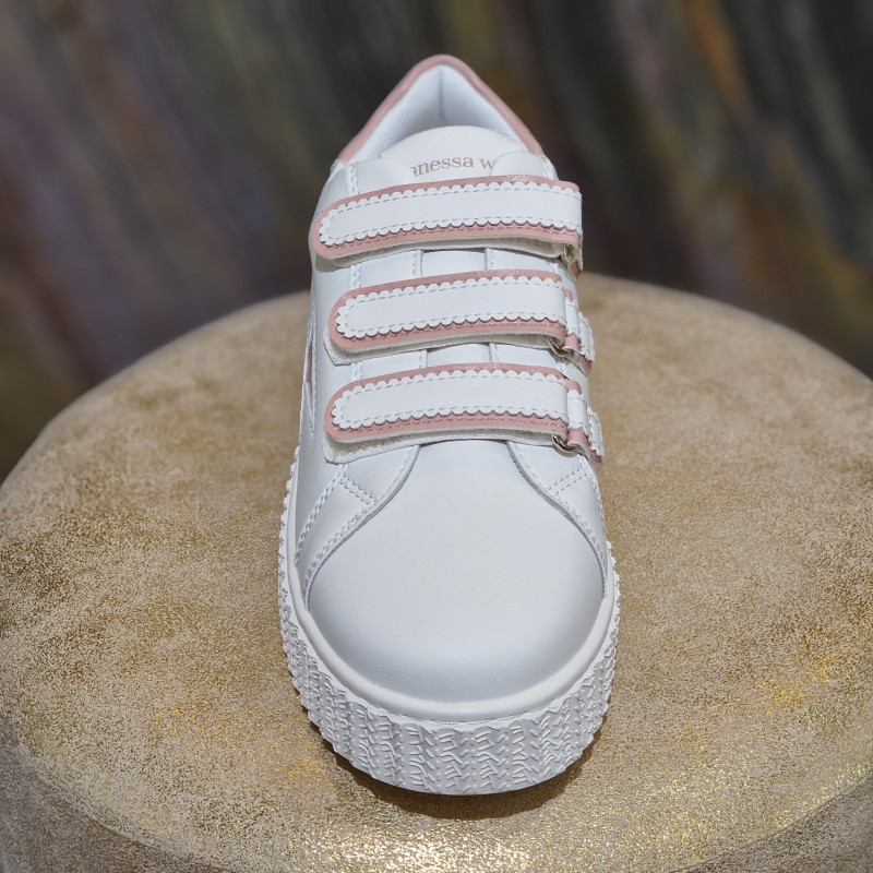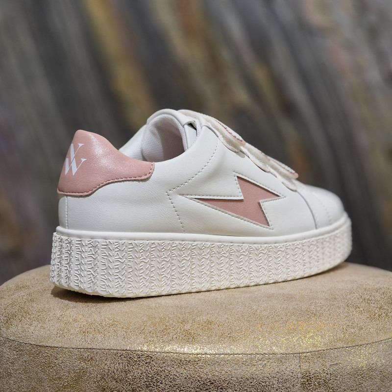 Basket blanche Maggie Originals à éclair rose et à scratchs assortis de chez VANESSA WU