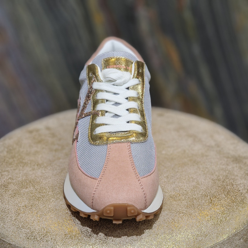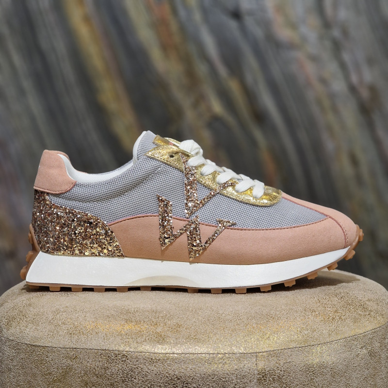 Basket rose et gris VANESSA WU Flow Initials à monogramme, finition doré pailleté, à semelle running