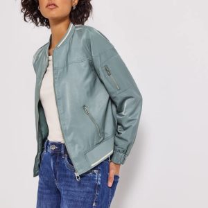 Blouson bomber en satin bleu vert de chez Street One.