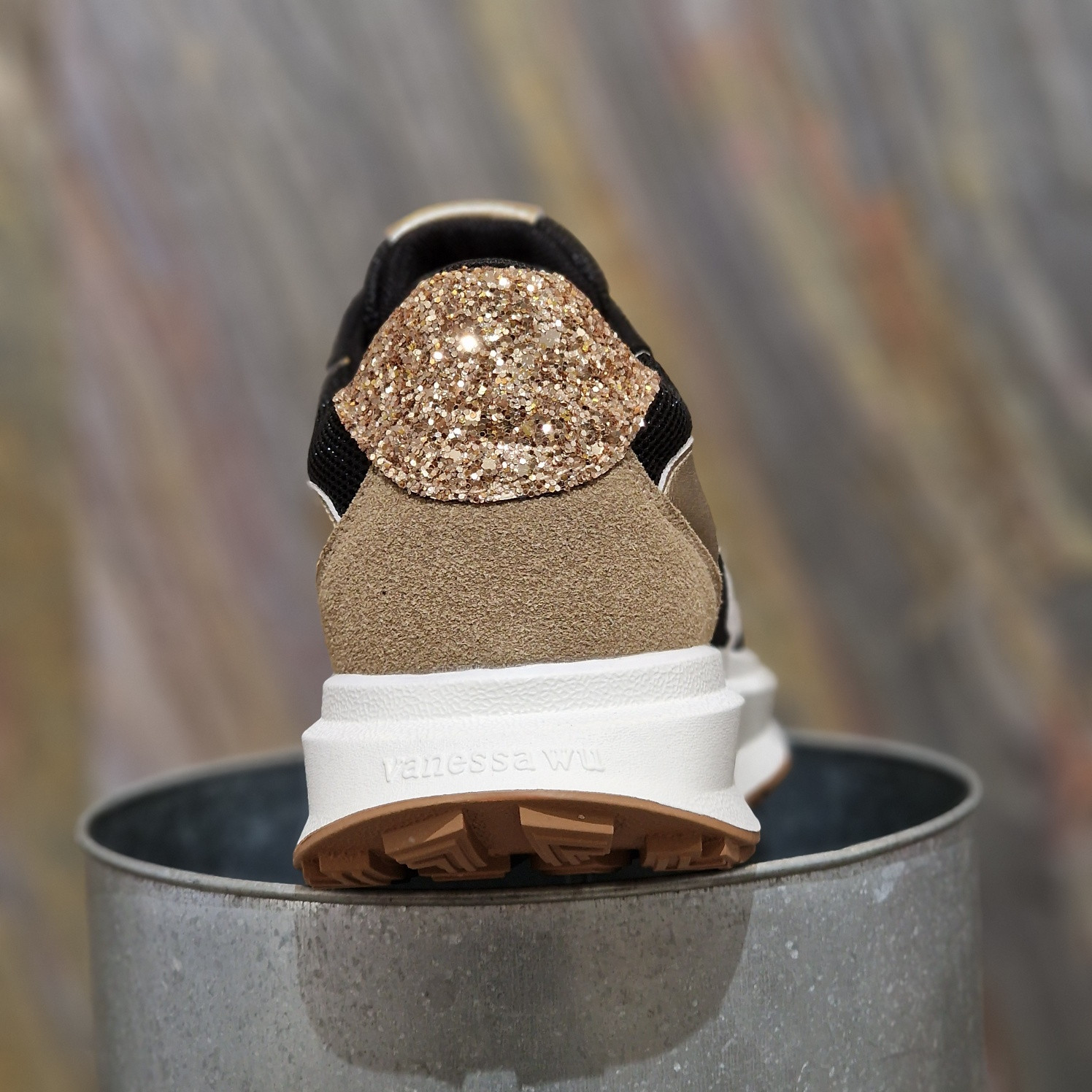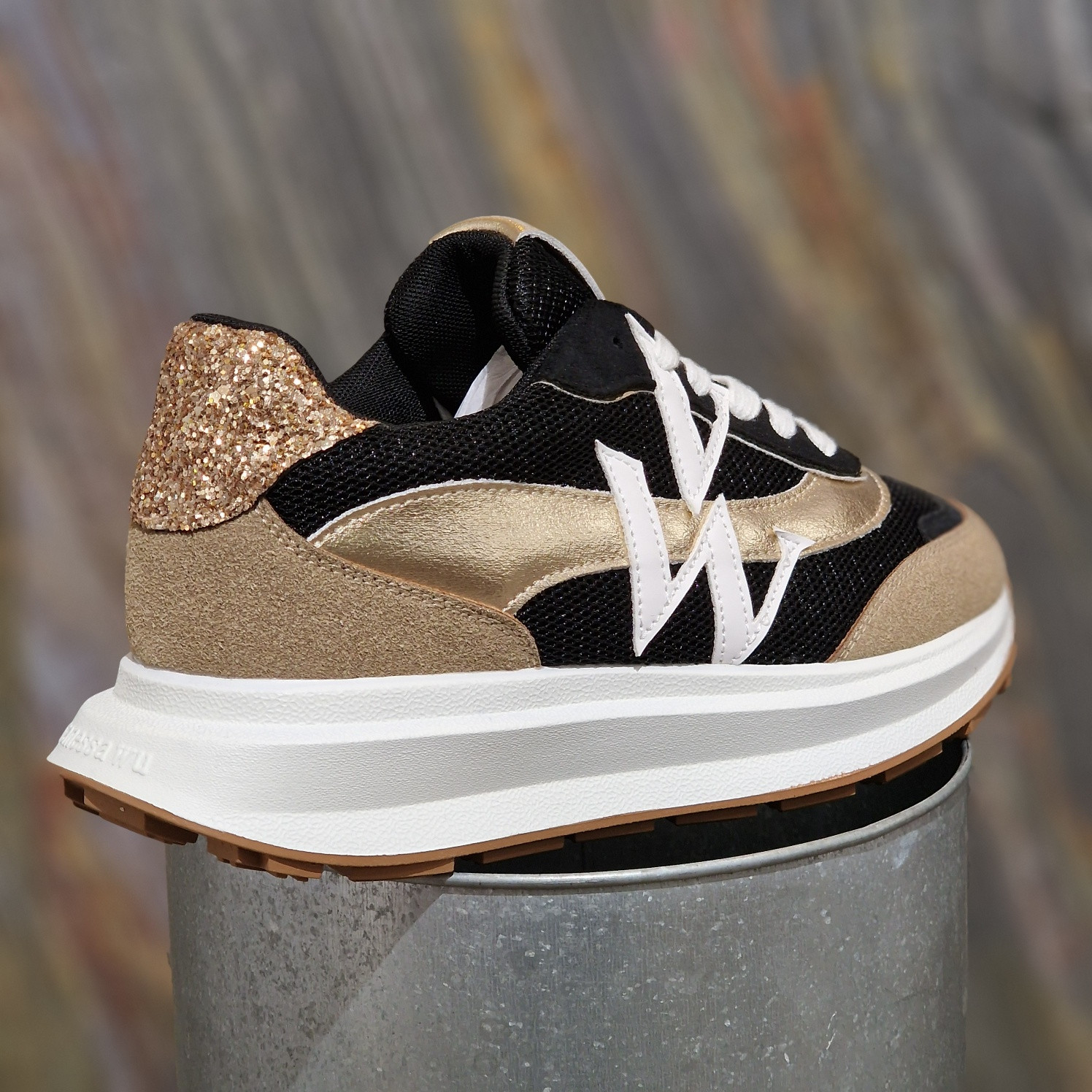 - Patch arrière en tissu or pailleté