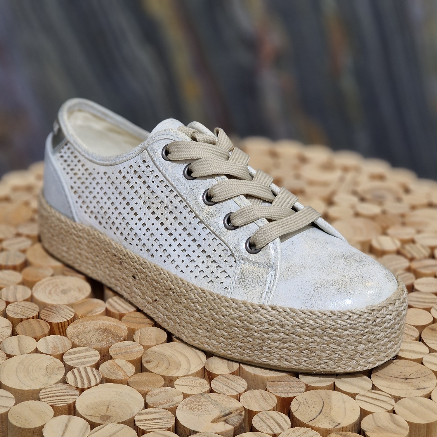 Son design perforé sur les côtés assure une bonne respirabilité, idéal pour les beaux jours. La semelle compensée en corde vient sublimer le modèle avec une note naturelle et estivale, tout en offrant une hauteur confortable.