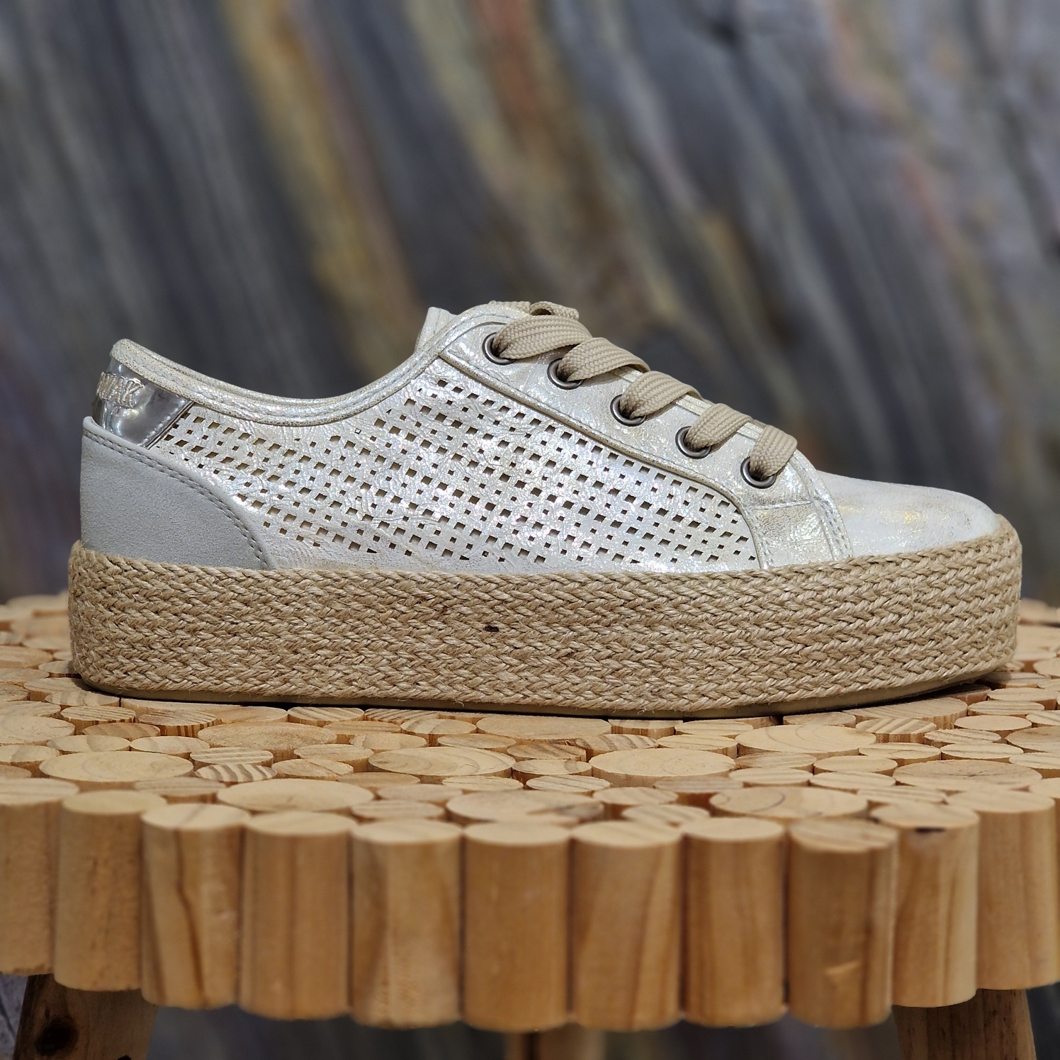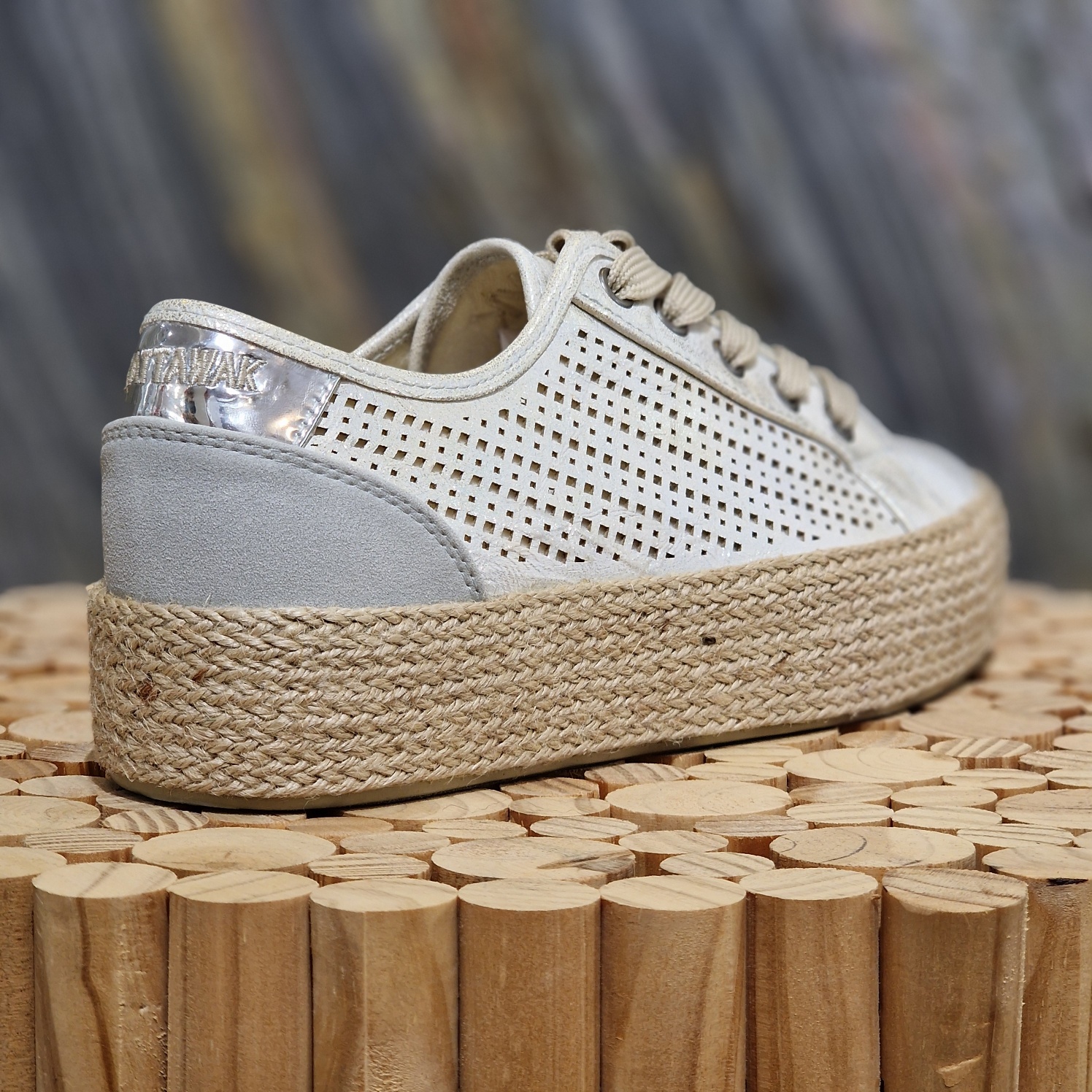 Adoptez un style à la fois tendance et confortable avec cette basket compensée CHATAWAK au coloris argent tanné. Son effet légèrement métallisé apporte une touche lumineuse et moderne à vos tenues du quotidien.