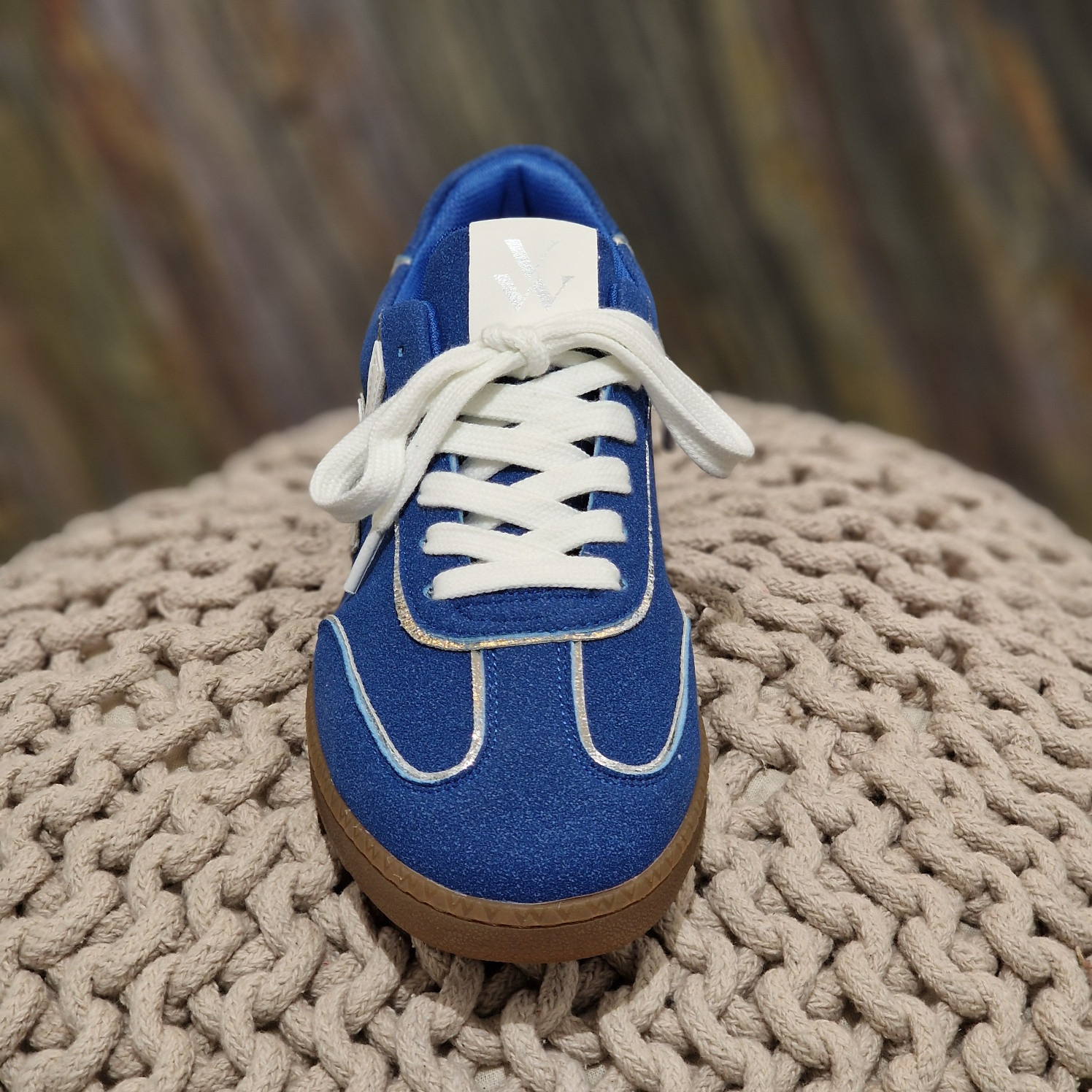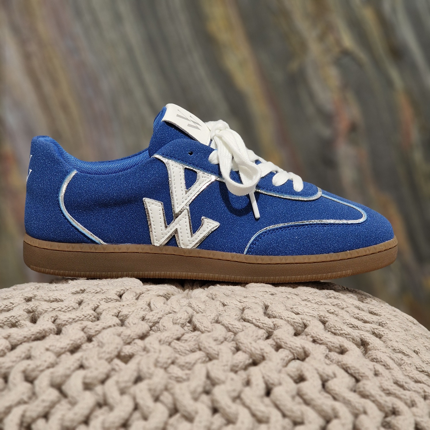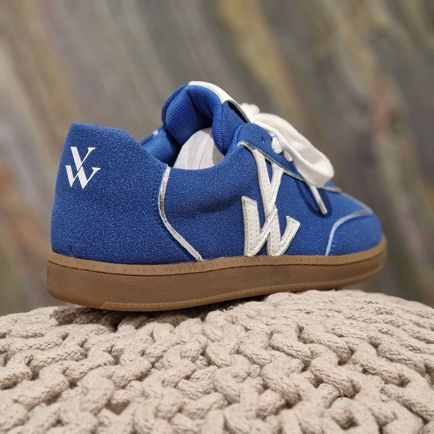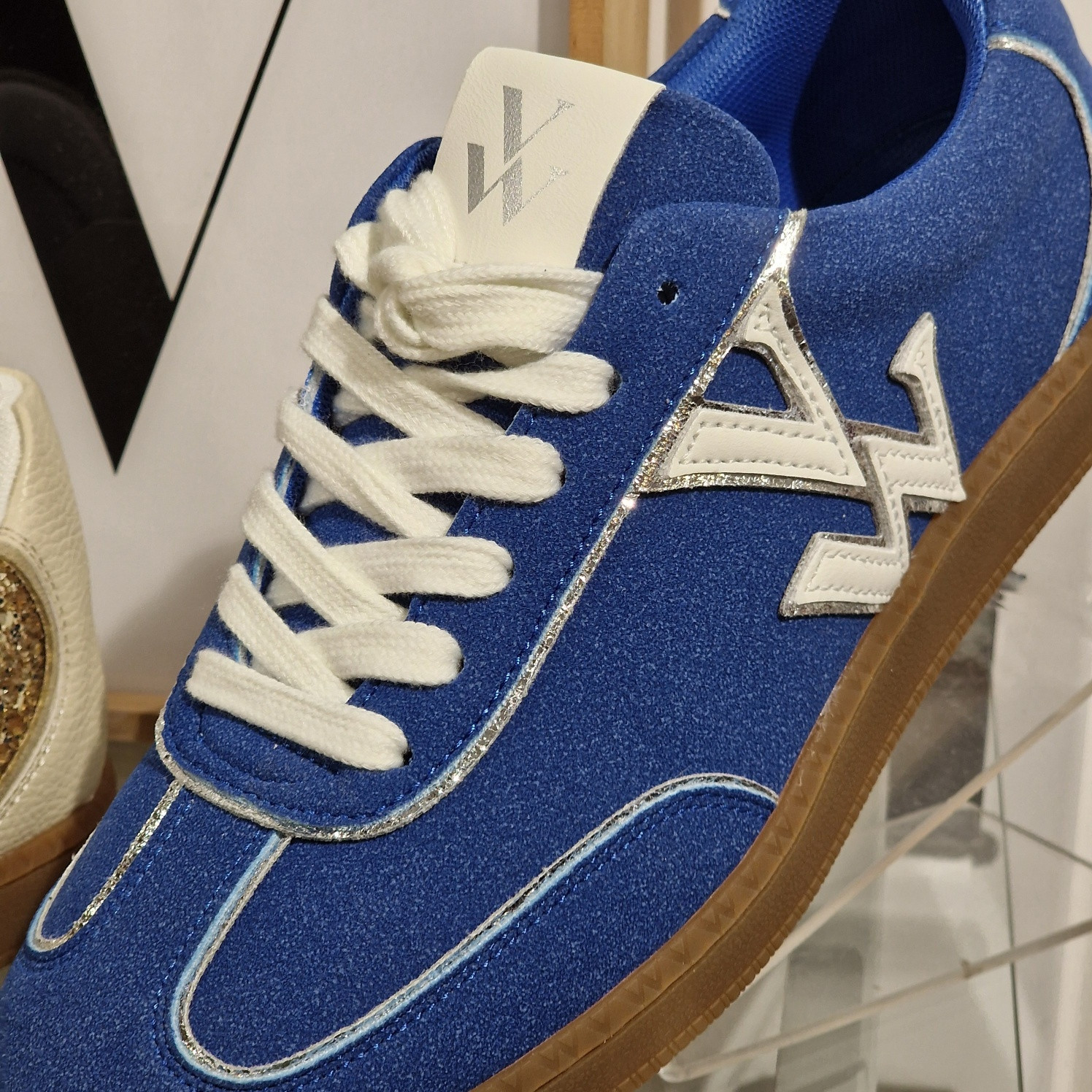 Basket éclair Sophie beige effet poulain, à scratchs noirs en suédine de chez VANESSA WU.