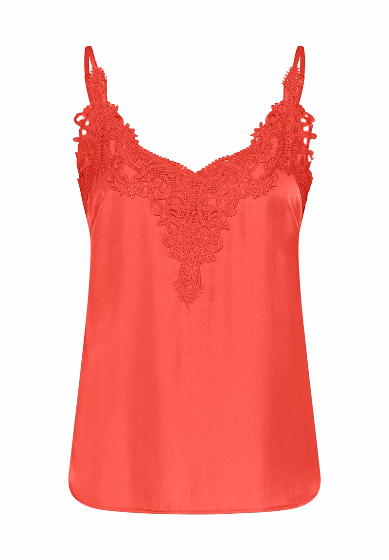 Ce caraco femme propose une coupe droite, un décolleté en V délicat orné de dentelle et des bretelles fines réglables. Idéal pour superposer ou porter seul.
