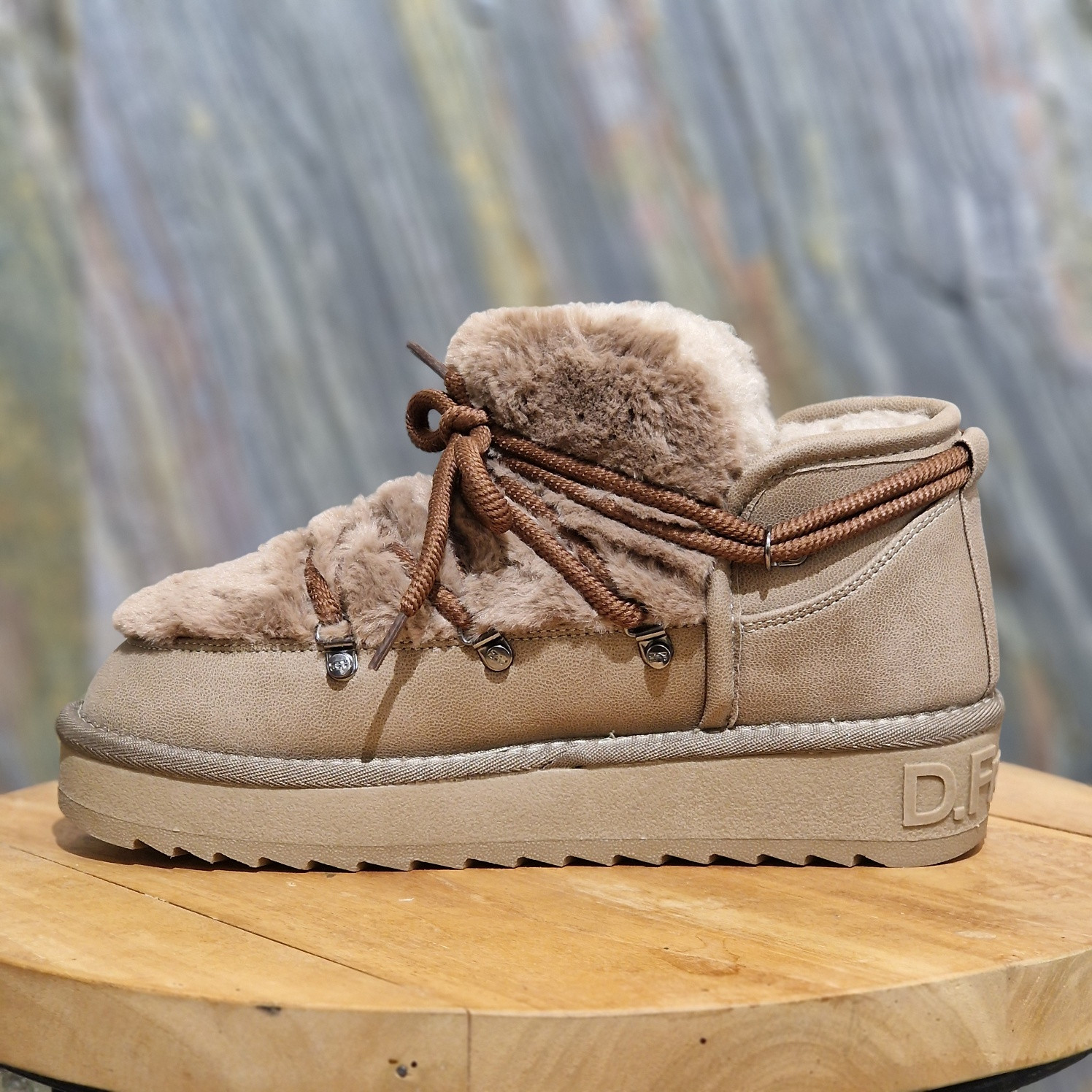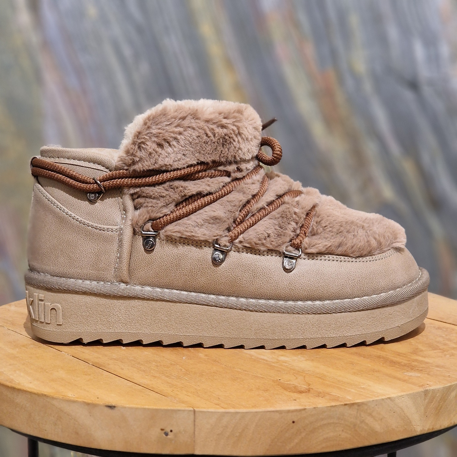 Bottine avec fourrure extérieure nordique. Une pièce conçue pour s'aventurer dans les rues froides.