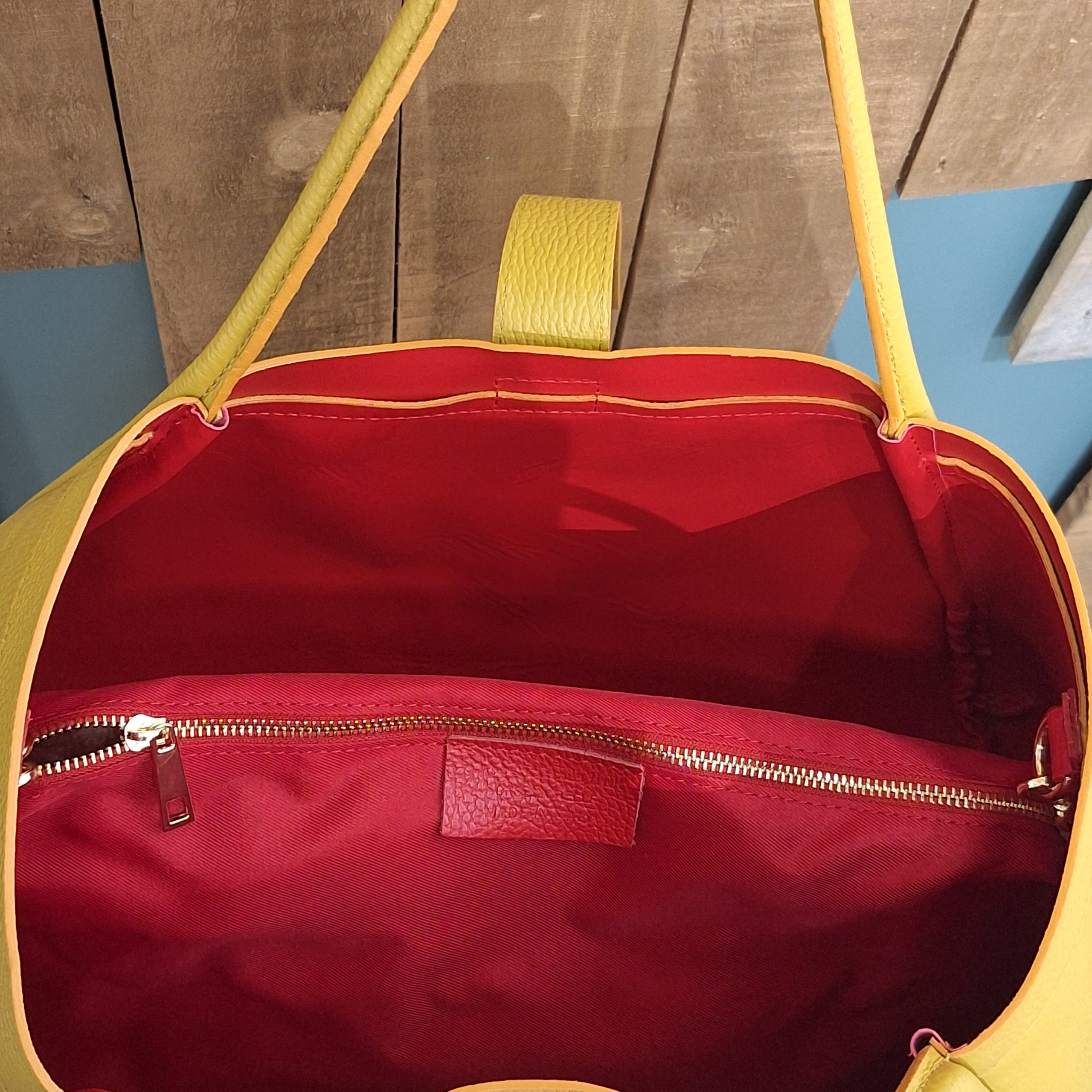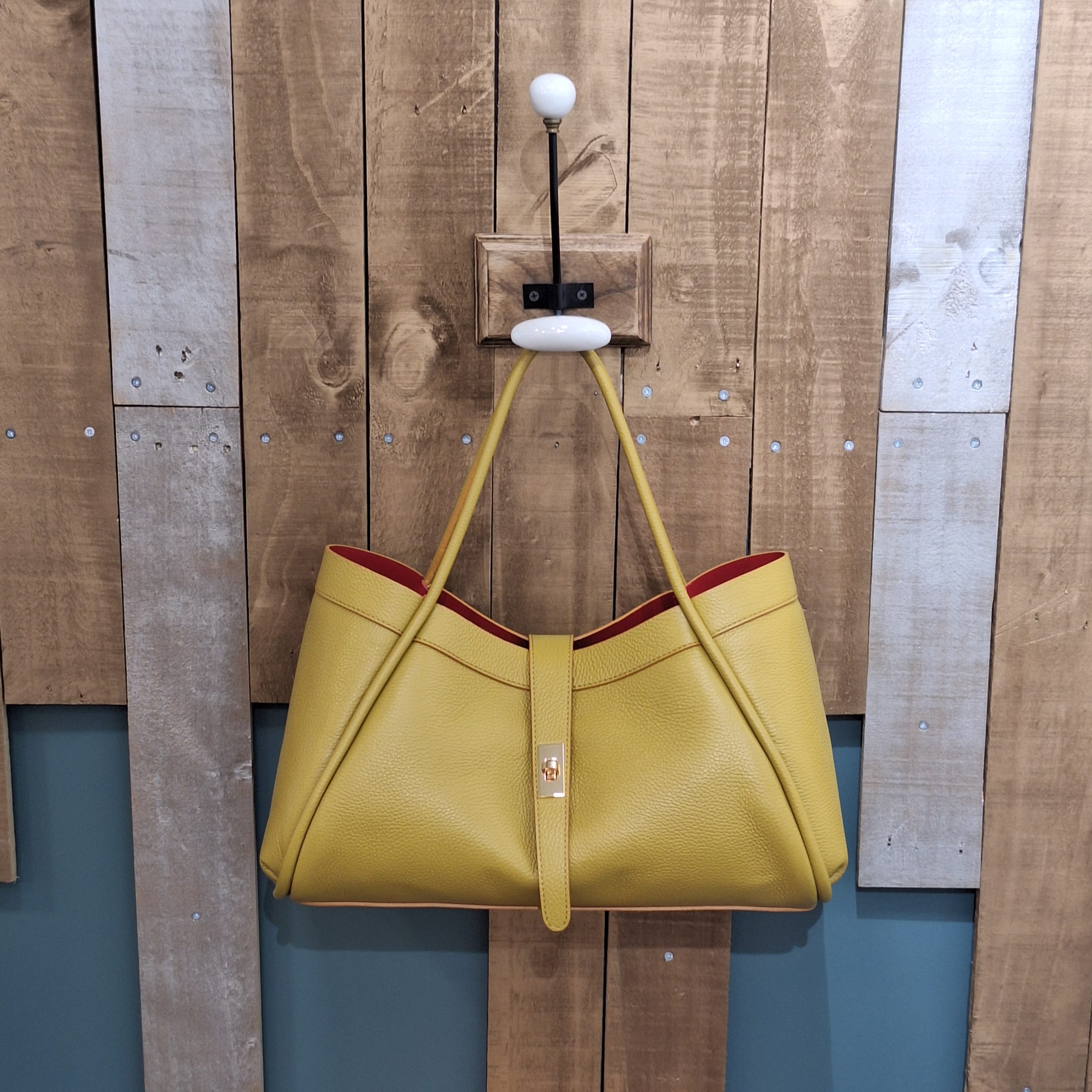 Sac à main en forme de Coeur, en cuir italien de couleur beige.