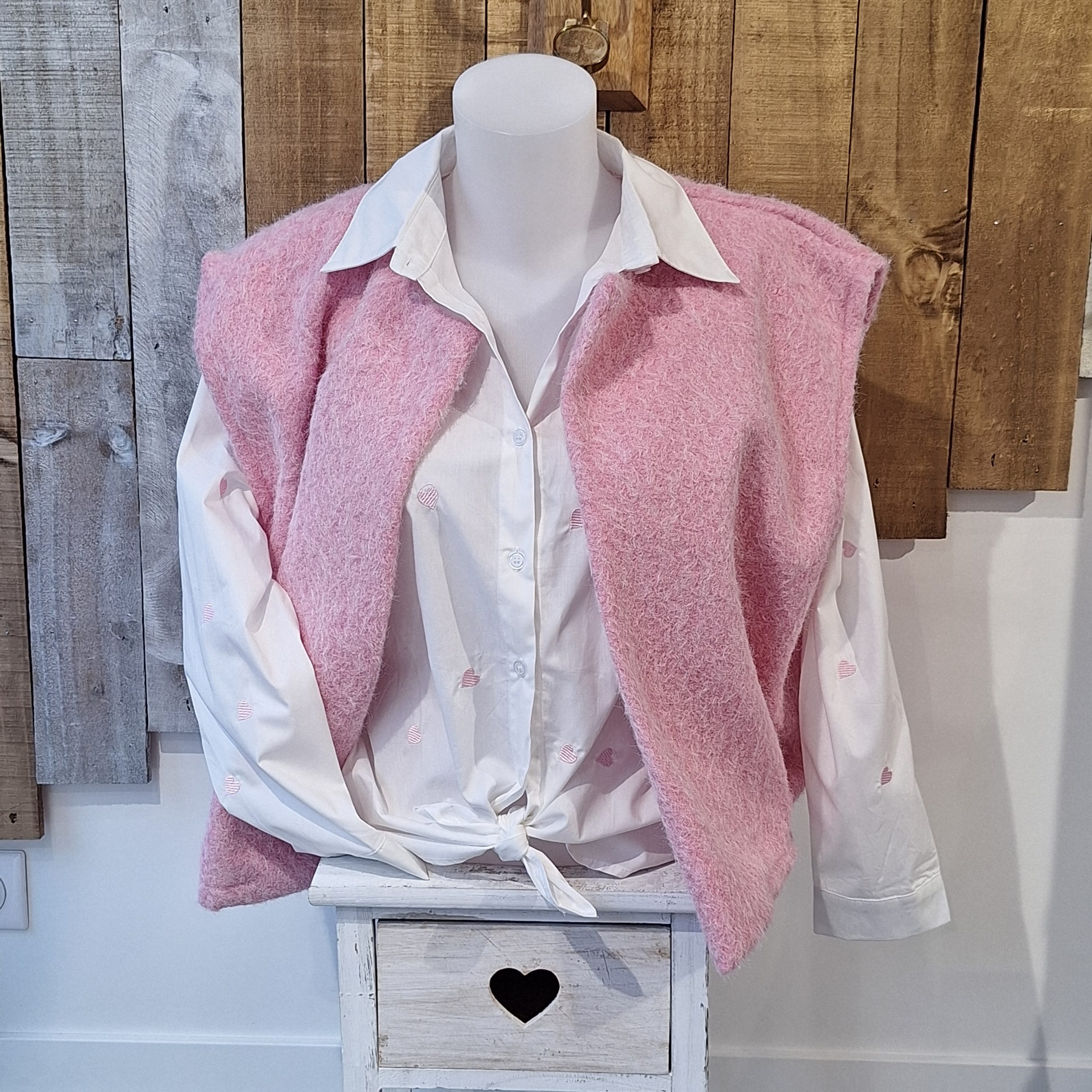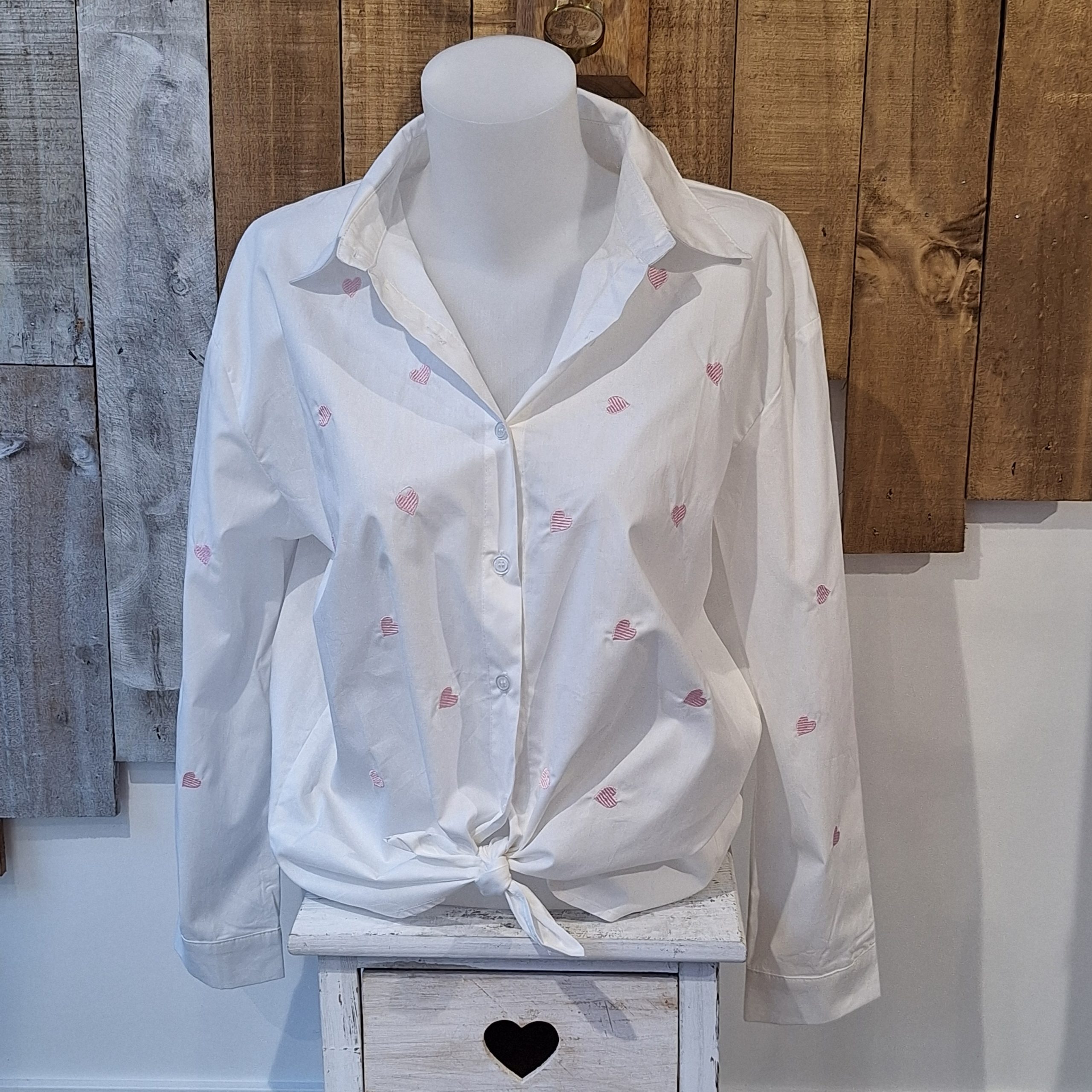Chemisier brodé coeur rose