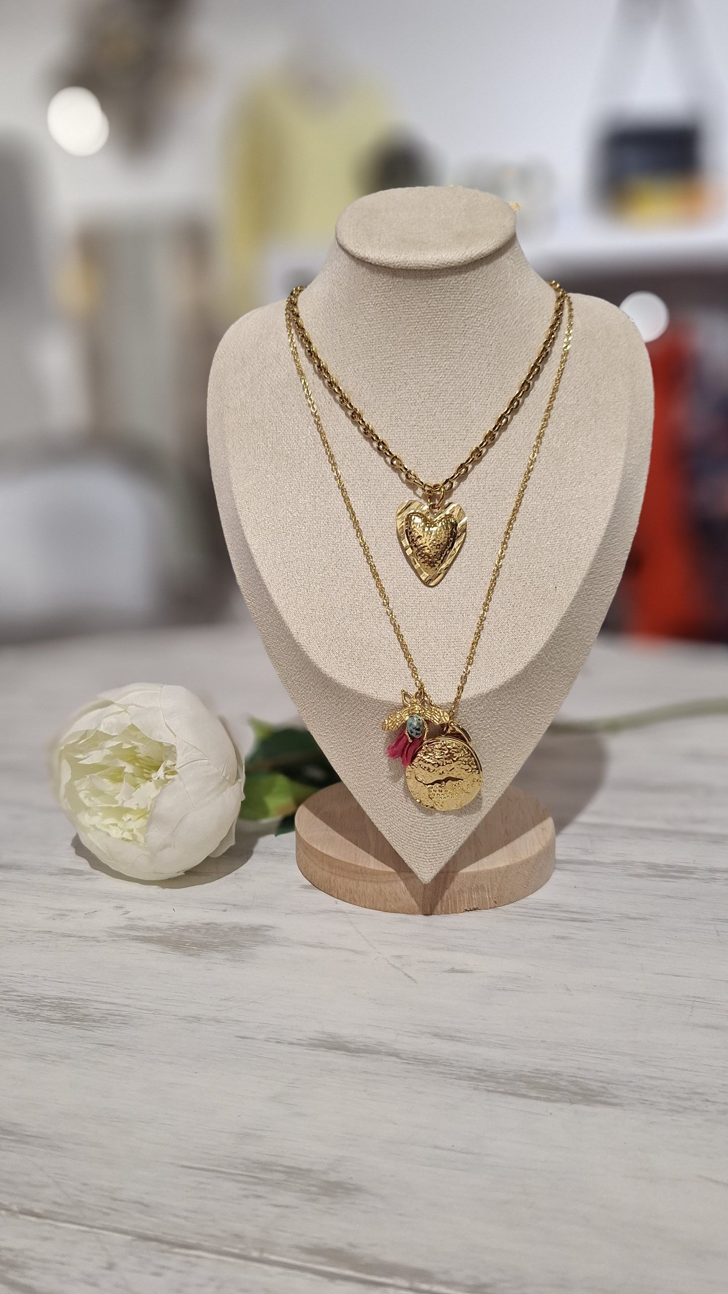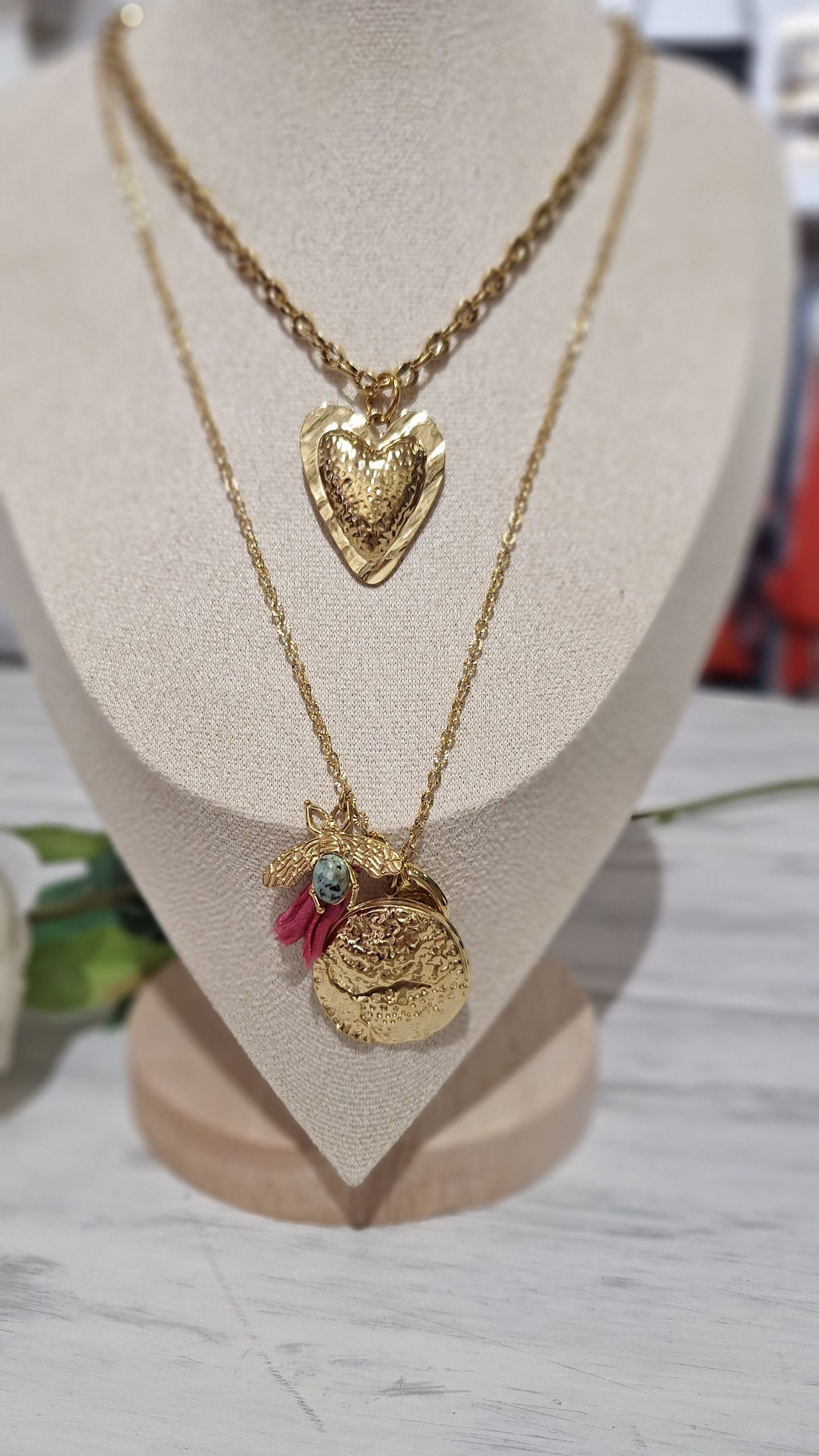 Collier double fantaisie or et rose