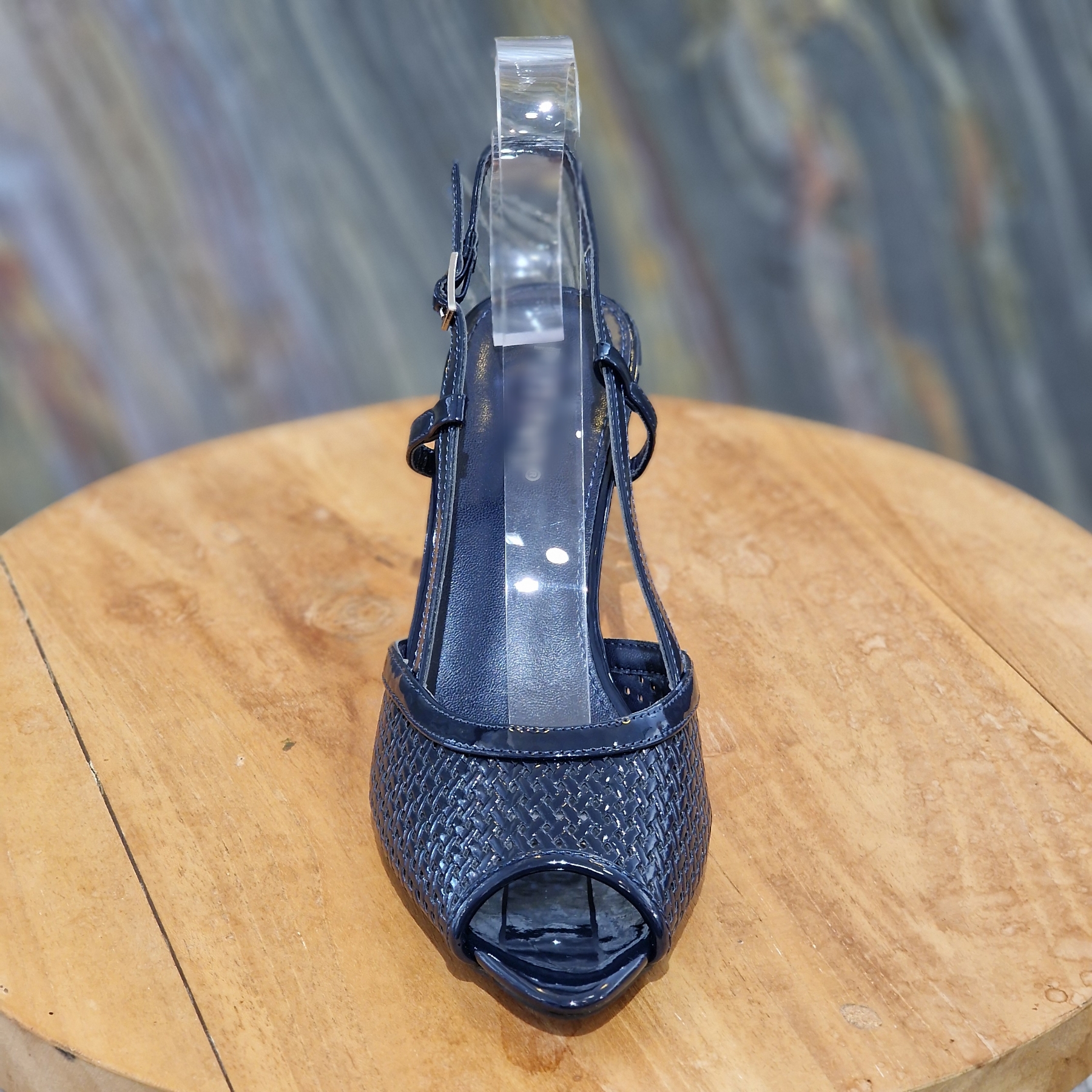 Apportez une touche d’élégance et de sophistication à votre tenue avec cet escarpin à talon bleu marine vernis. Son fini brillant capte délicatement la lumière et sublime le pied, tandis que sa coupe ouverte et ses motifs ajourés apportent légèreté et féminité. Monté sur un talon élancé, il élève la silhouette et assure une allure chic et raffinée. Idéal pour une soirée, une cérémonie ou pour rehausser une tenue habillée, cet escarpin allie charme, modernité et élégance intemporelle. 👠✨