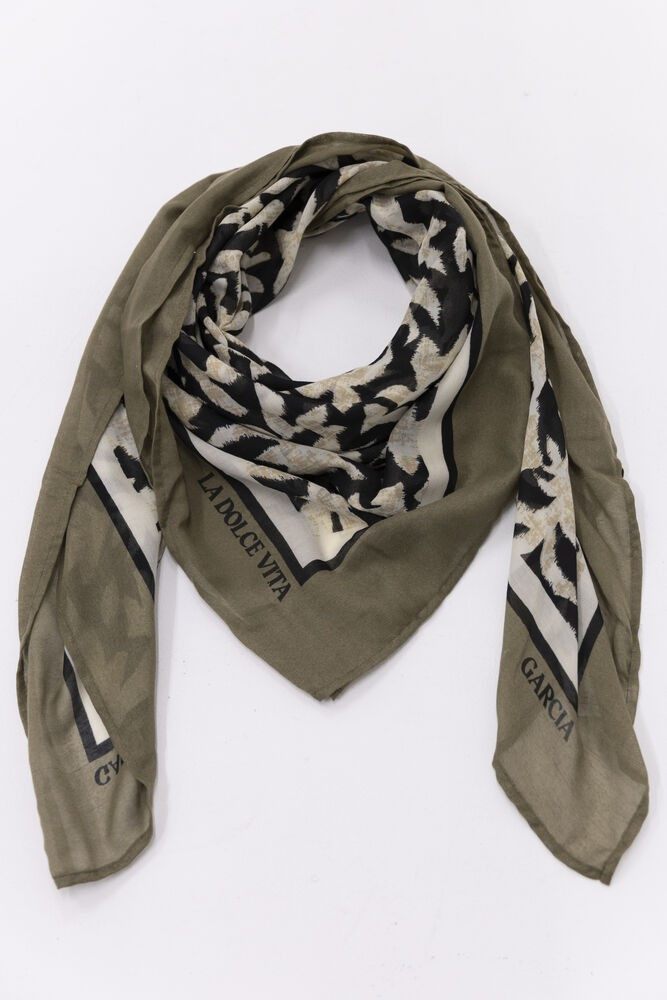 Foulard carré avec imprimé allover. Cet article ajoute une touche tendance à votre tenue ! L’écharpe carrée mesure 120 cm x 120 cm et est composée à 100 % de polyester recyclé.Ce vêtement GARCIA est fabriqué à partir de fils recyclés. Les matériaux recyclés sont créés à partir de déchets, qui sont ensuite transformés en matières premières.