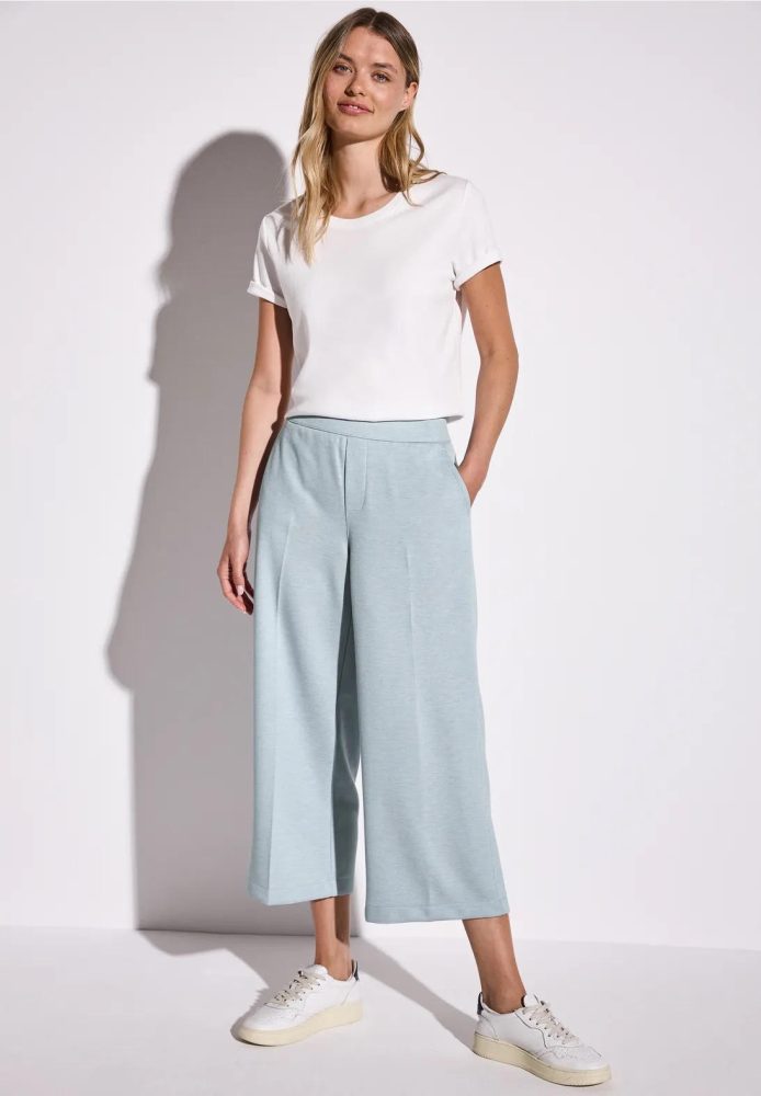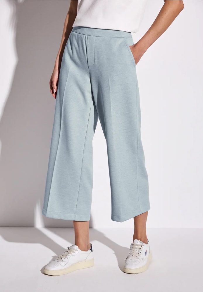 Ce slip mélangé de Street One pour femmes séduit par ses Wide Legs et sa coupe High Waist. La taille élastique assure un port confortable, tandis que le mélange de matières avec une part de stretch donne un aspect fluide.