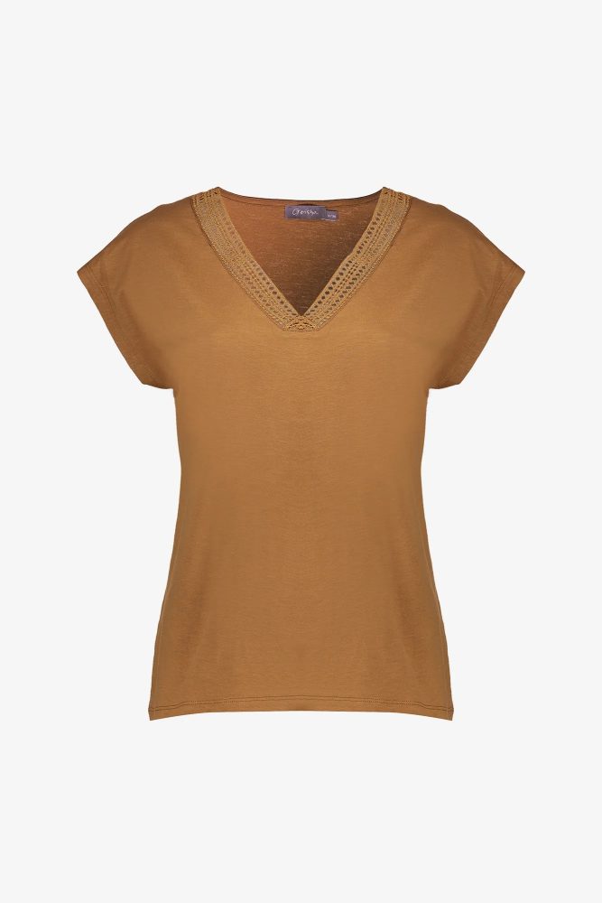 Ce t-shirt fait partie de notre collection S25-2.• Coupe : Drapé droit• Col : col en V en crochet• Manches : Manches courtes• Imprimé : Couleur unie.