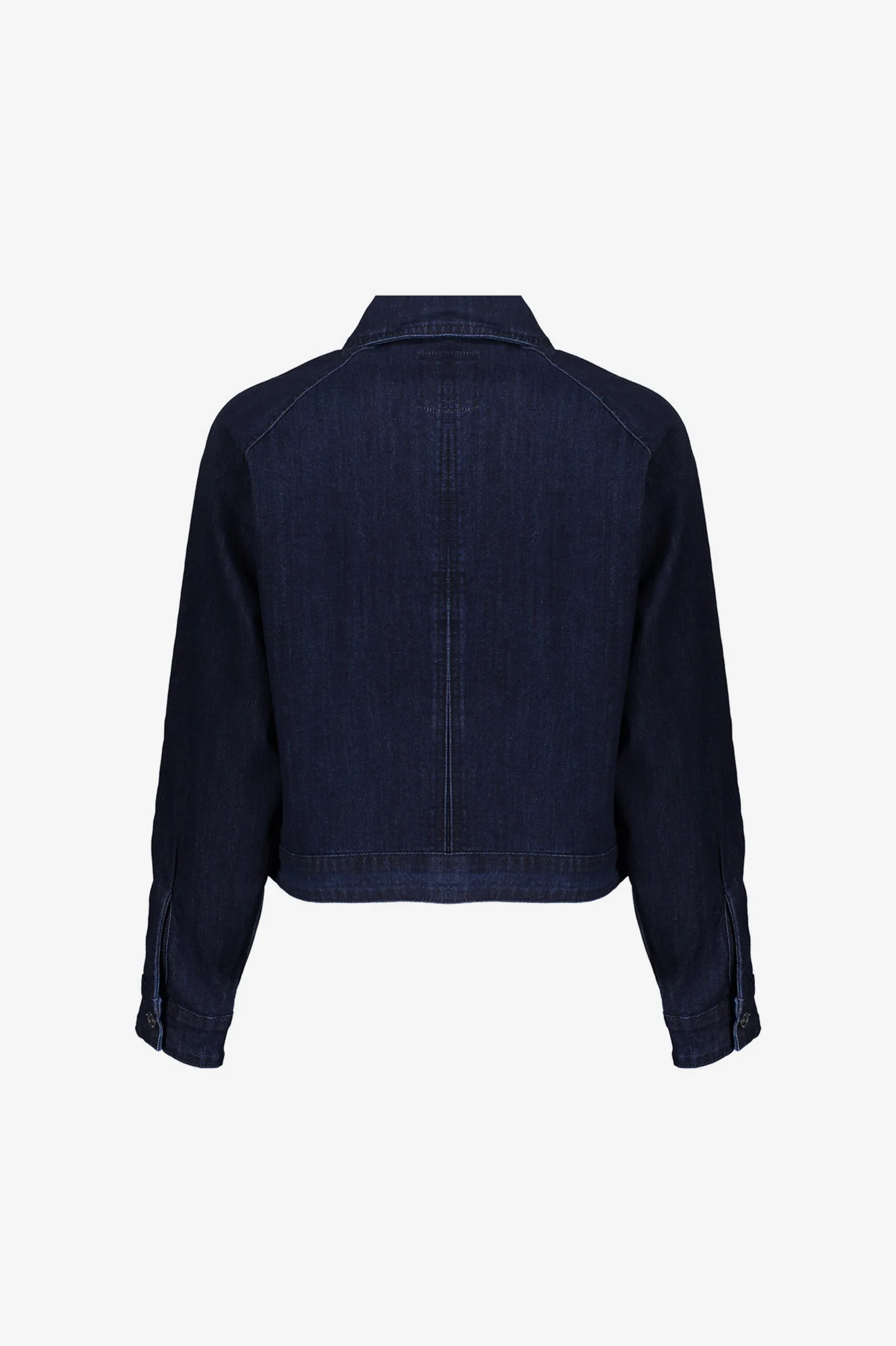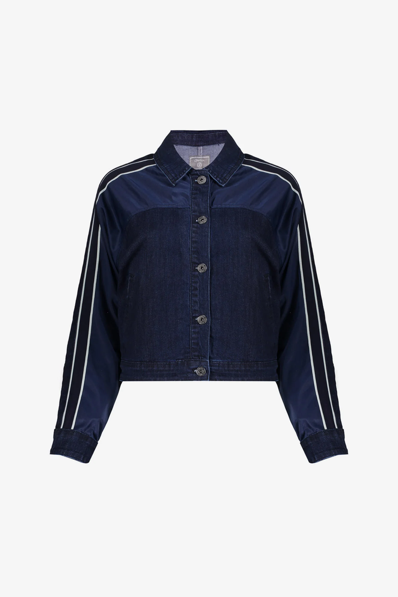 Cette veste de notre collection S26-1 est un mélange contemporain de denim et de détails sportifs. Sa coupe droite et confortable est rehaussée de rayures contrastantes le long des manches. Portez-la seule sur un chemisier ou associez-la au jean assorti. Idéale pour les soirées d'été où style et confort se conjuguent.Veste courte et droite.