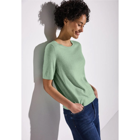 Ce pull-over tricoté de Street One pour femmes avec un col rond classique et des manches courtes est un vrai talent polyvalent. Le doux mélange de viscose le rend agréable à porter.