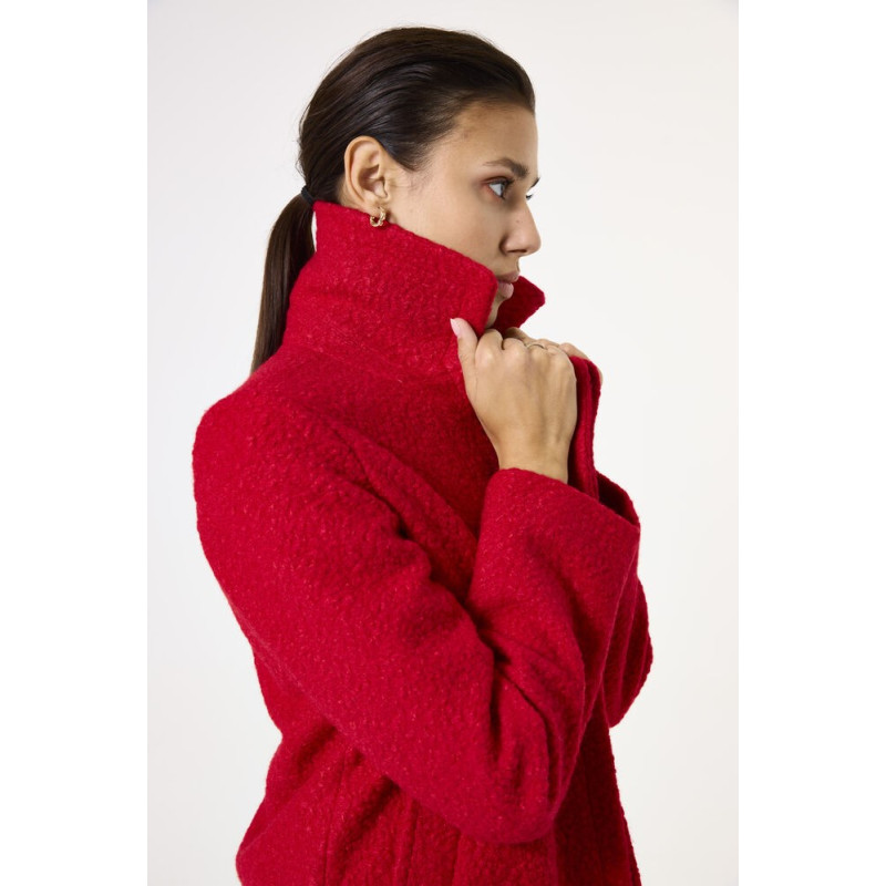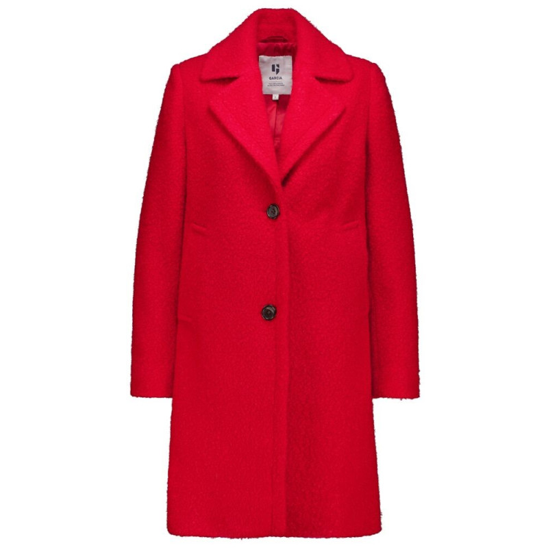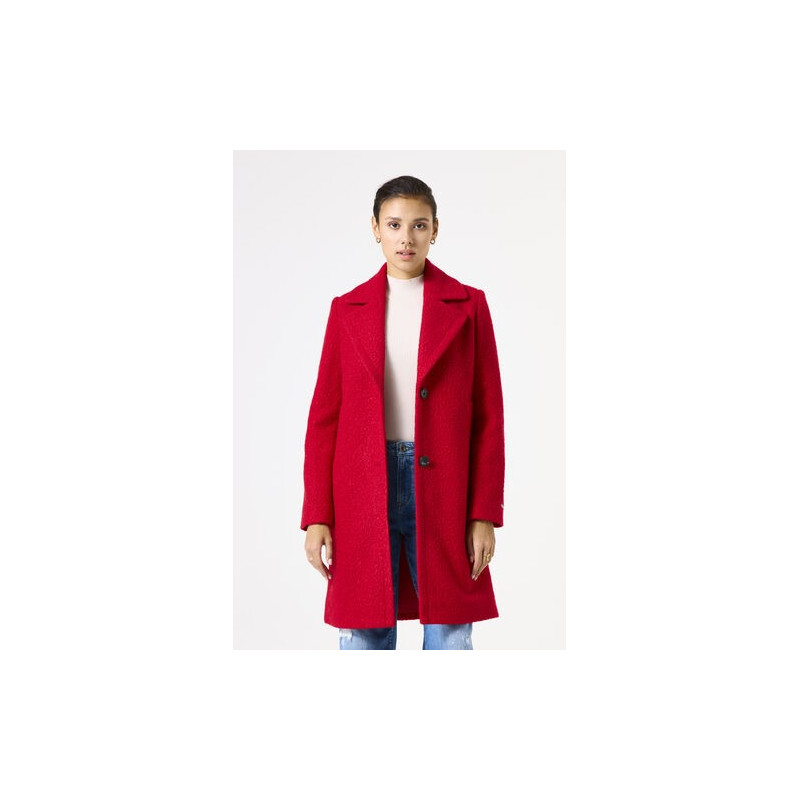 Manteau élégant en fil bouclé. Cette veste est dotée de manches longues, d’un col oversize avec coutures, de poches passepoilées, d’une fermeture à boutons et d’une coupe régulière. De plus, cette veste a une longueur qui arrive au-dessus du genou et une fente à l’arrière, offrant un look classique avec une touche moderne. La couche extérieure de cette veste est composée à 100 % de polyester.