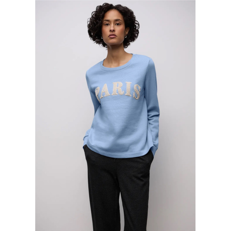 Sweat bleu givré avec écriture "PARIS" sur le devant de chez Street One.